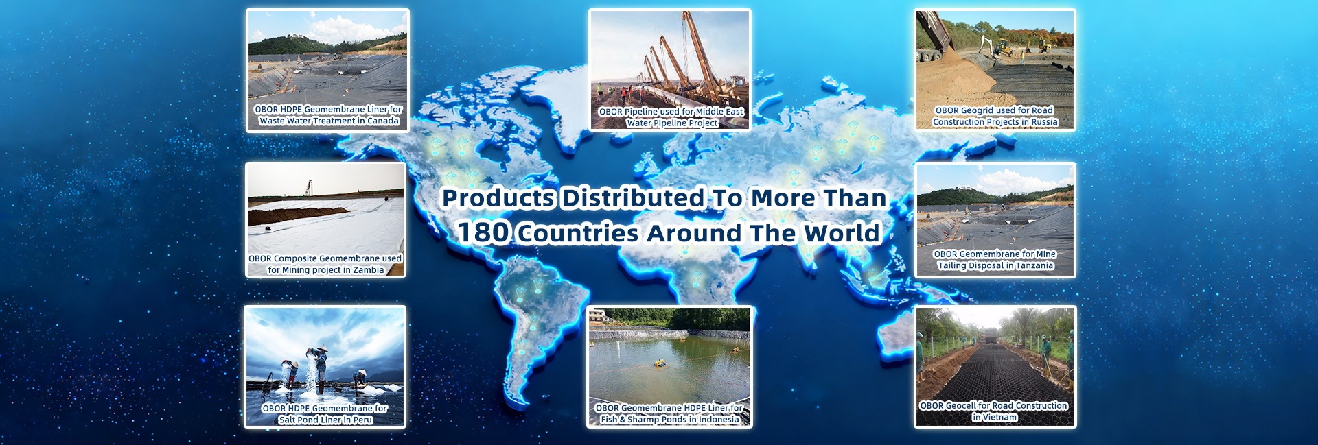 OBOR, a large and professional geosynthetic products manufacturing company in China with 30+ years history. The main products are HDPE Geomembrane, HDPE Geocell, PP/PET geotextile, HDPE drainage board, Grass grids paver, HDPE root barrier and Geomembrane welding machine etc.